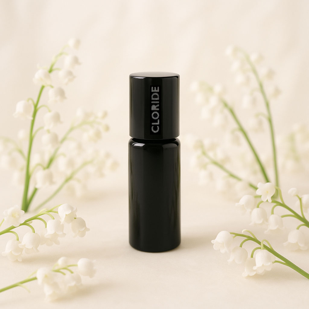Then a breath of Tuberose, accelerates the beats, outlining a subtle, delicate sensuality, in that intrinsic naivety. The sprout takes shape, roots its stem on a background softened by the powdery softness of ambrette seeds, while, enveloped in gray amber, extends its durability, welcomed by the comfortable roundness of Mosses. In avant-garde synthesis it immerses, now complete, to enhance every facet and surprise, once again, dressing corolla and stem with Lily of the Valley bloomed with changing notes. Now ready to sign, oil on skin, its unmistakable floral perfume with the metaphysical name: Cloride.